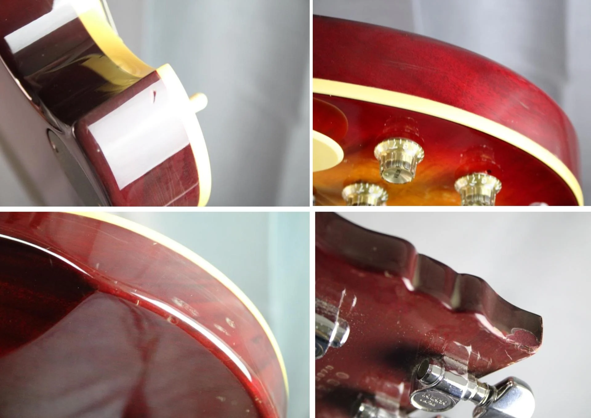 Quelques rayures, marques de vie, frettes en très bon état : 8/10 (voir photos pour plus de précisions). Gros sustain et résonance.