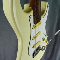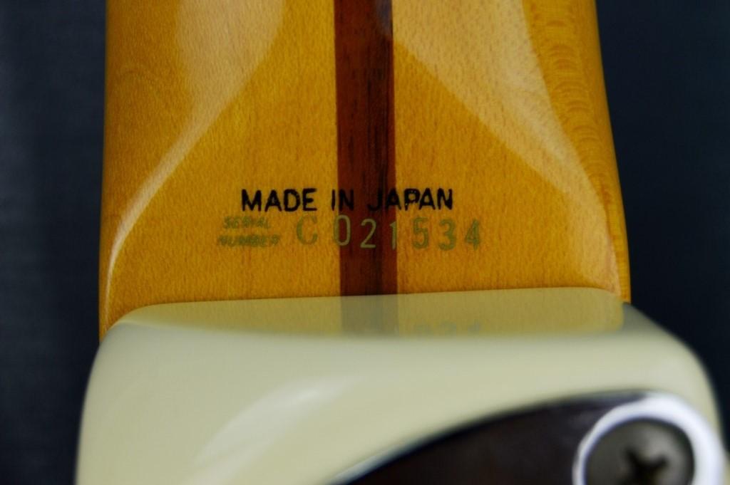 FENDER Stratocaster STS-55 VWhite ’Short Scale’, modèle très rare, peu fabriquée. Et années Post JV (série Cxxx). Non-importée en Europe. Prévue pour le marché nippon. Fabrication inspirée des modèles USA : plaque de manche, pontets type US, bloc vibrato à 2 inserts comme les USA etc..