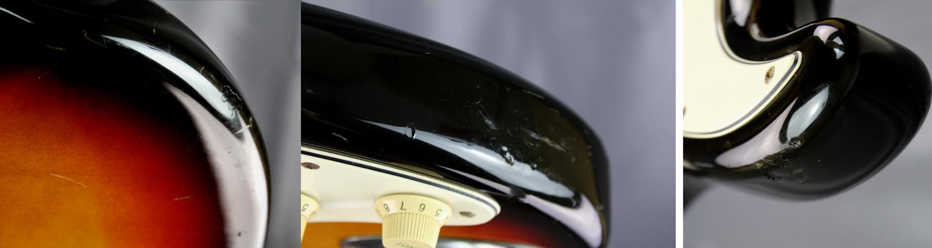 Très bonne lutherie, sonorités claquantes et précises. Les micros d’origine Fender USA offrent des sonorités parfaites et harmonieuses, idéal au rock/pop/blues. Jeu très agréable. Très bon état général, quelques marques de vie et rayures, frettes en bon état : 8/10 (voir photos pour plus de précisions).