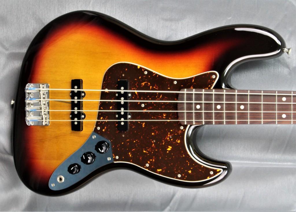 Basse FENDER Jazz Bass modèle JB’62-US reissue, fabrication JAPON de 2008. Finition 3TS Sunburst,