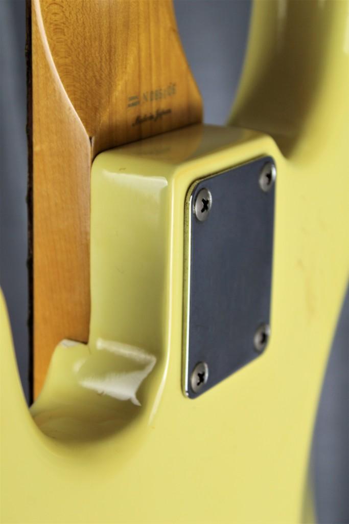 Pas mal de petites marques de vie sur le corps, sans aucune incidence. Très bon état général, frettes en très bon état : 8.5/10 ! (voir photos pour plus de précisions). Très très agréable au jeu, le manche est exceptionnel.