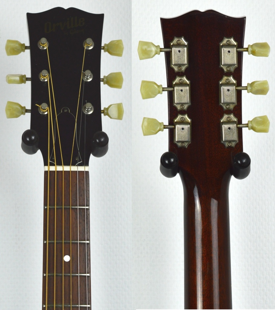 Orville est une GIBSON, avec le savoir-faire Japonais. Finition exemplaire. La jonction manche/corps a été améliorée pour encore, un meilleur sustain, d’ailleurs, le procédé a été repris par GIBSON USA..)
