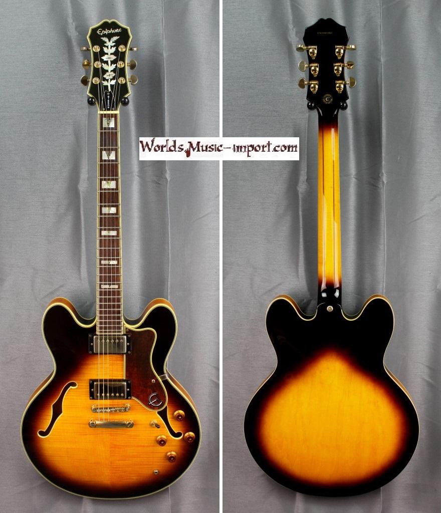 Superbe EPIPHONE by GIBSON modèle SHERATON II DELUXE couleur Vintage Sunburst, fabriquée sous license Gibson en 2003 en Corée. "Limited Edition". RARE en occasion.