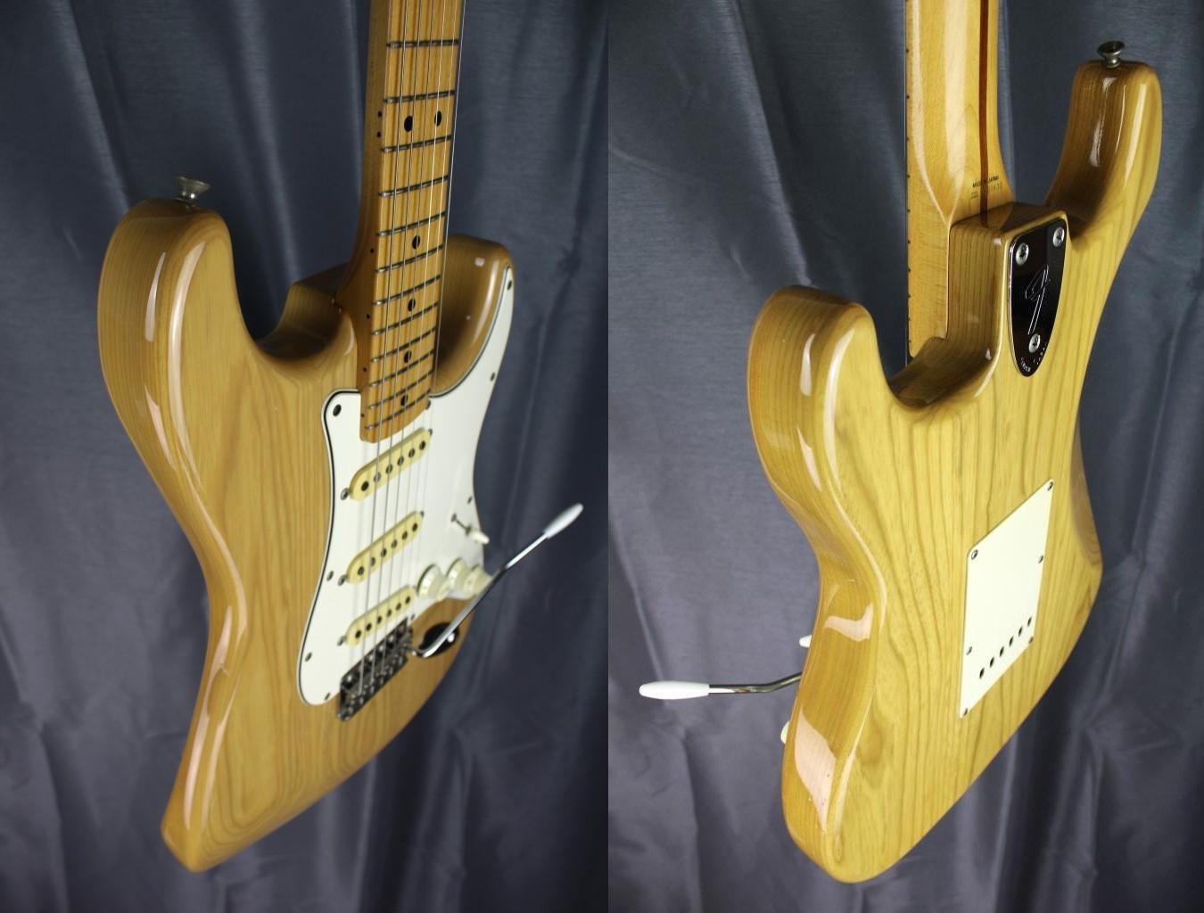 FENDER stratocaster, modèle ST-72’ ASH NAT, fabriquée au Japon dans la célèbre usine de Fuji-gen pour Fender en 1994. Excellente lutherie, vernis brillant et corps en frêne joliment veiné. Savoir-faire japonais.