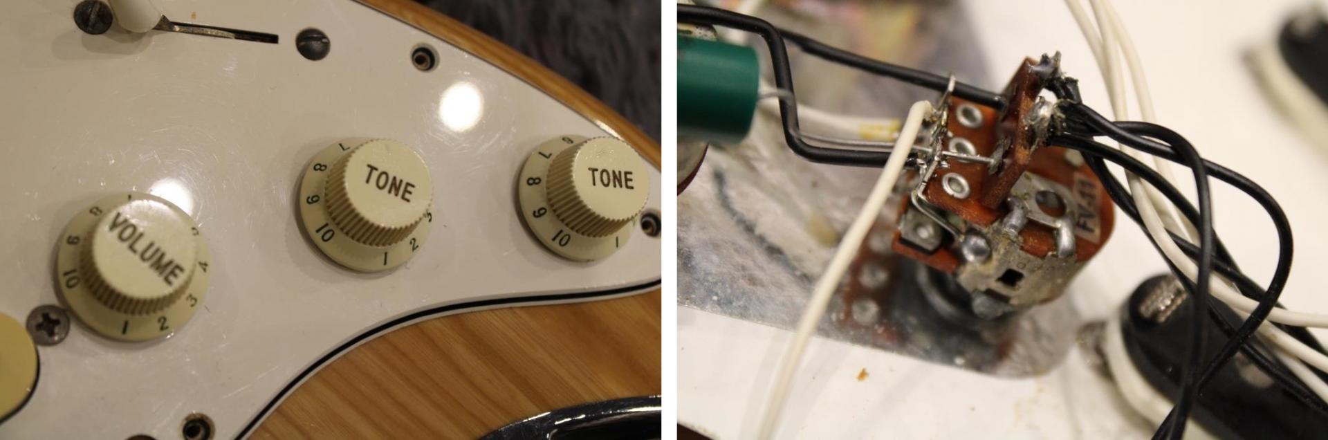 - potentiomètres 1 x Volume (neck), 1 x Tone général (middle) 1 x Boost (bridge)