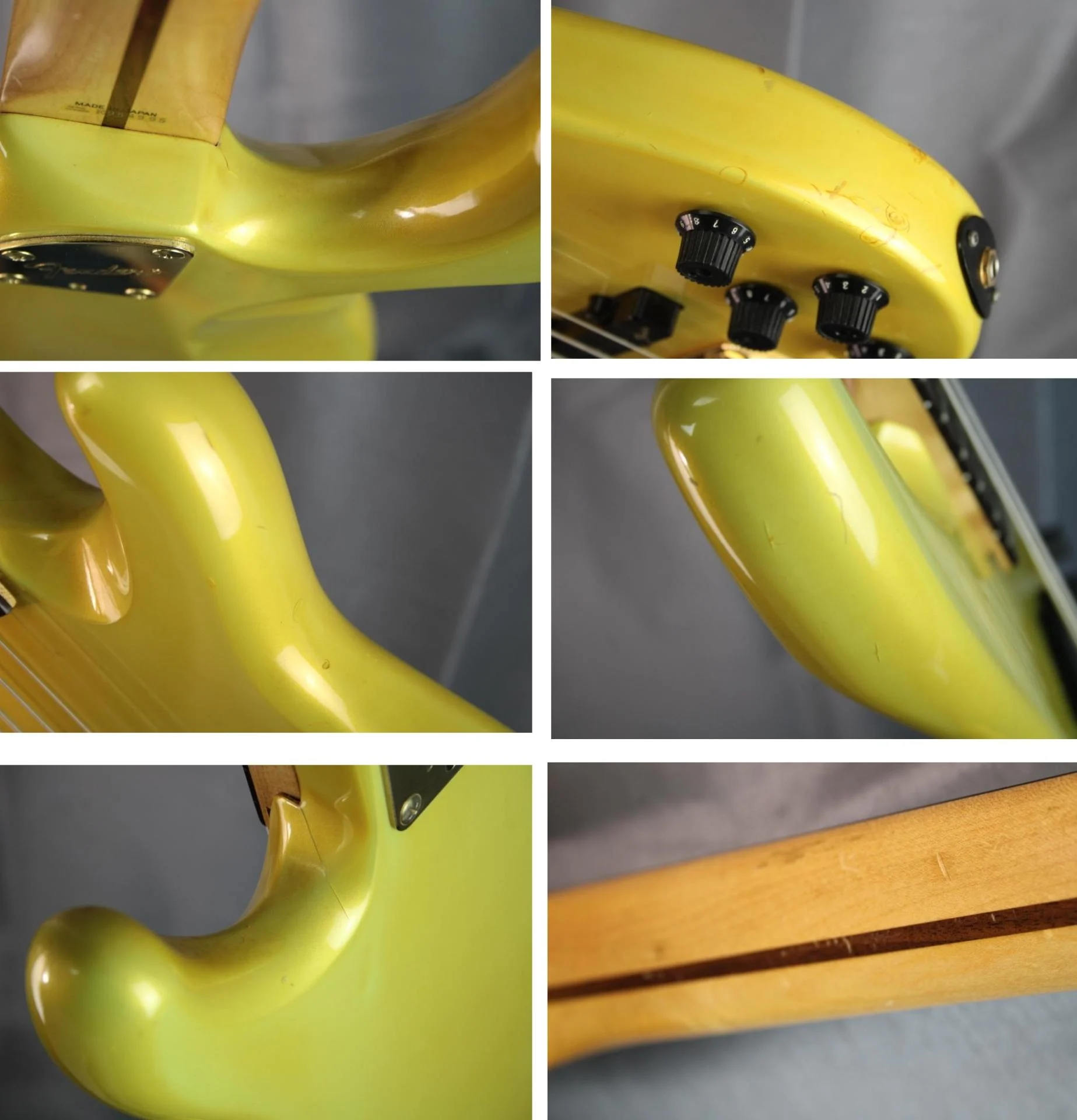 FENDER Basse PJM-55 Jazz Bass Special, couleur YellowWhite Metal, Medium Scale, made in Japan dans la célèbre usine de Fuji-gen en 1987.