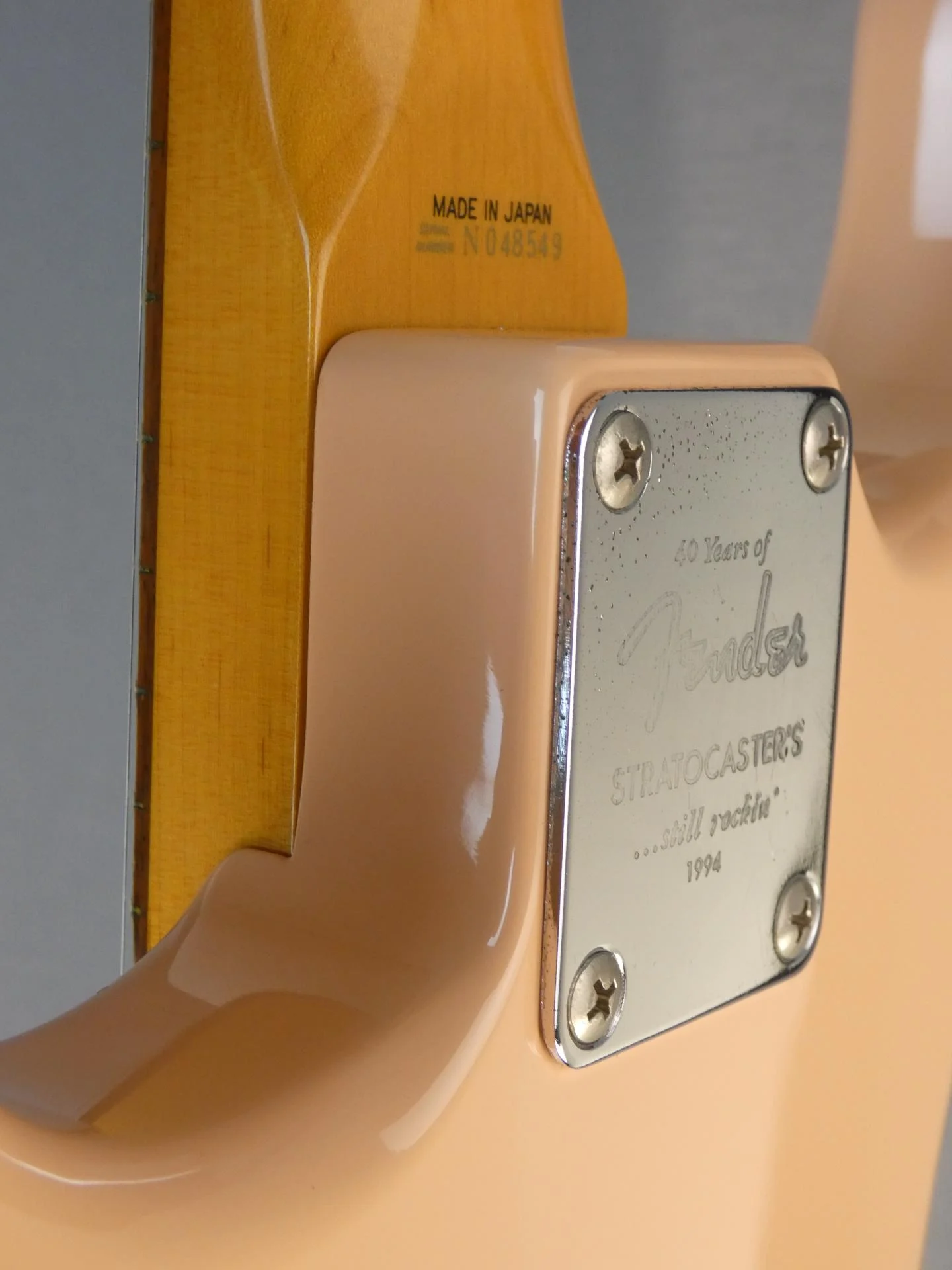 Fender Stratocaster modèle ST’62-SLP, couleur Shellpink "40th anniversary 1954-1994", made in Japan en 1994 dans la célèbre usine de Fujigen pour Fender.