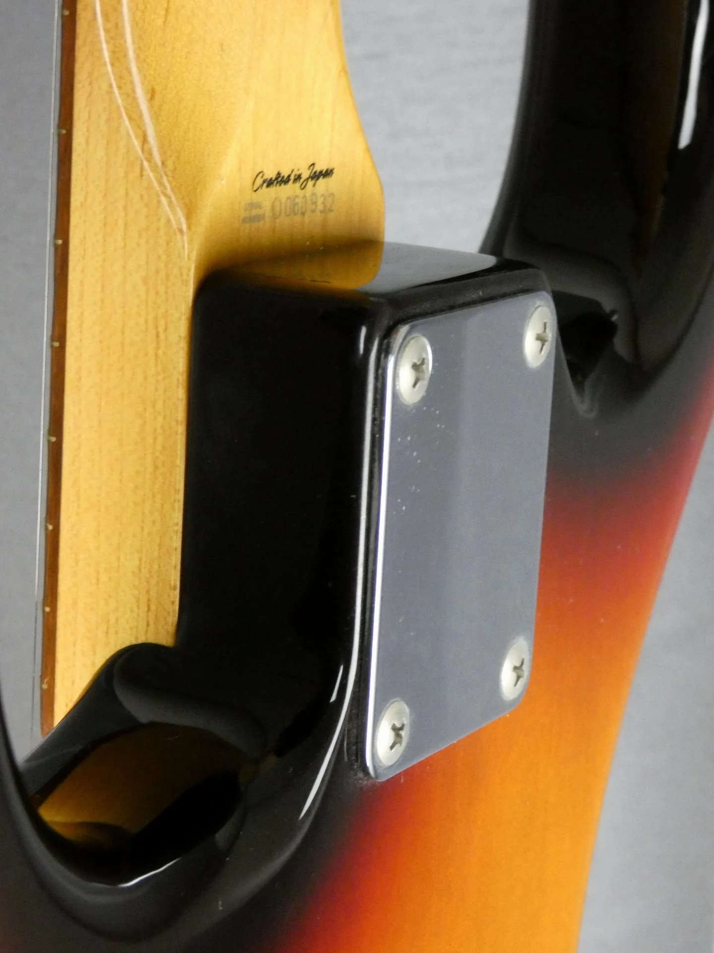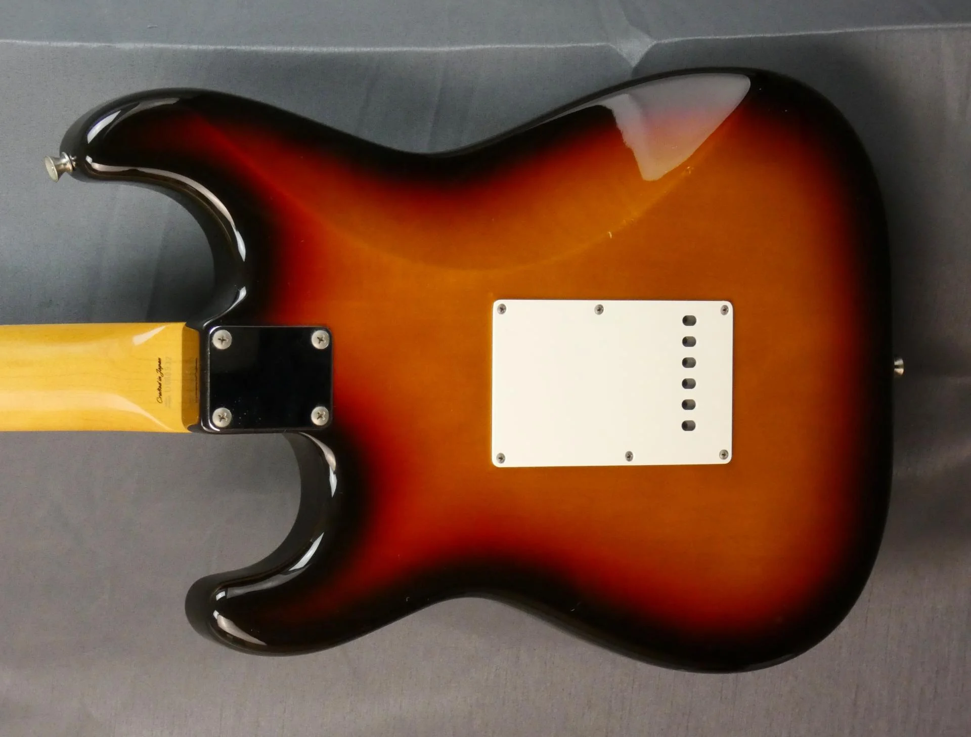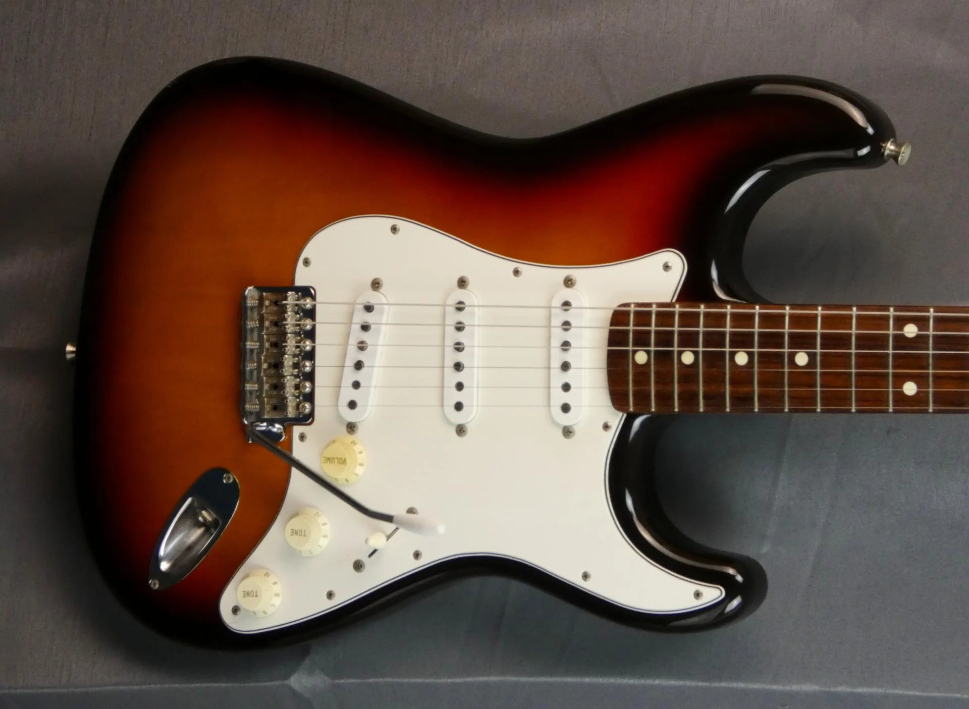 Guitare Fender stratocaster modèle ST’62-US Reissue 3TS (3 tons sunburst), fabriquée au Japon en 1999.