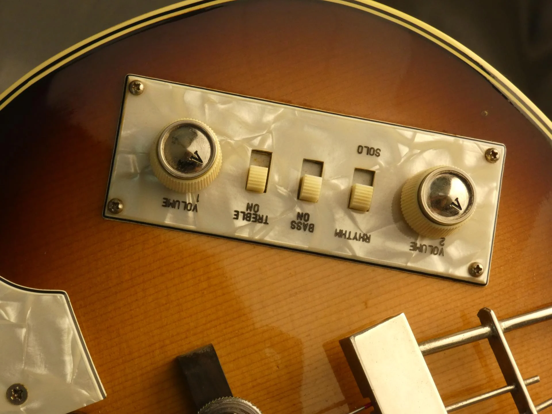 Très bel état général, très peu de marques de vie, basse jouée avec grand soin, très bonne lutherie et très bonne tenue d’accord. Frettes et touche en très bon état : 8/10 ! (voir photos pour plus de précisions). La jouabilité, le confort, les sonorités sont plus qu’excellents. Très belle réplique japonaise de la célèbre basse de Paul Mac Cartney.