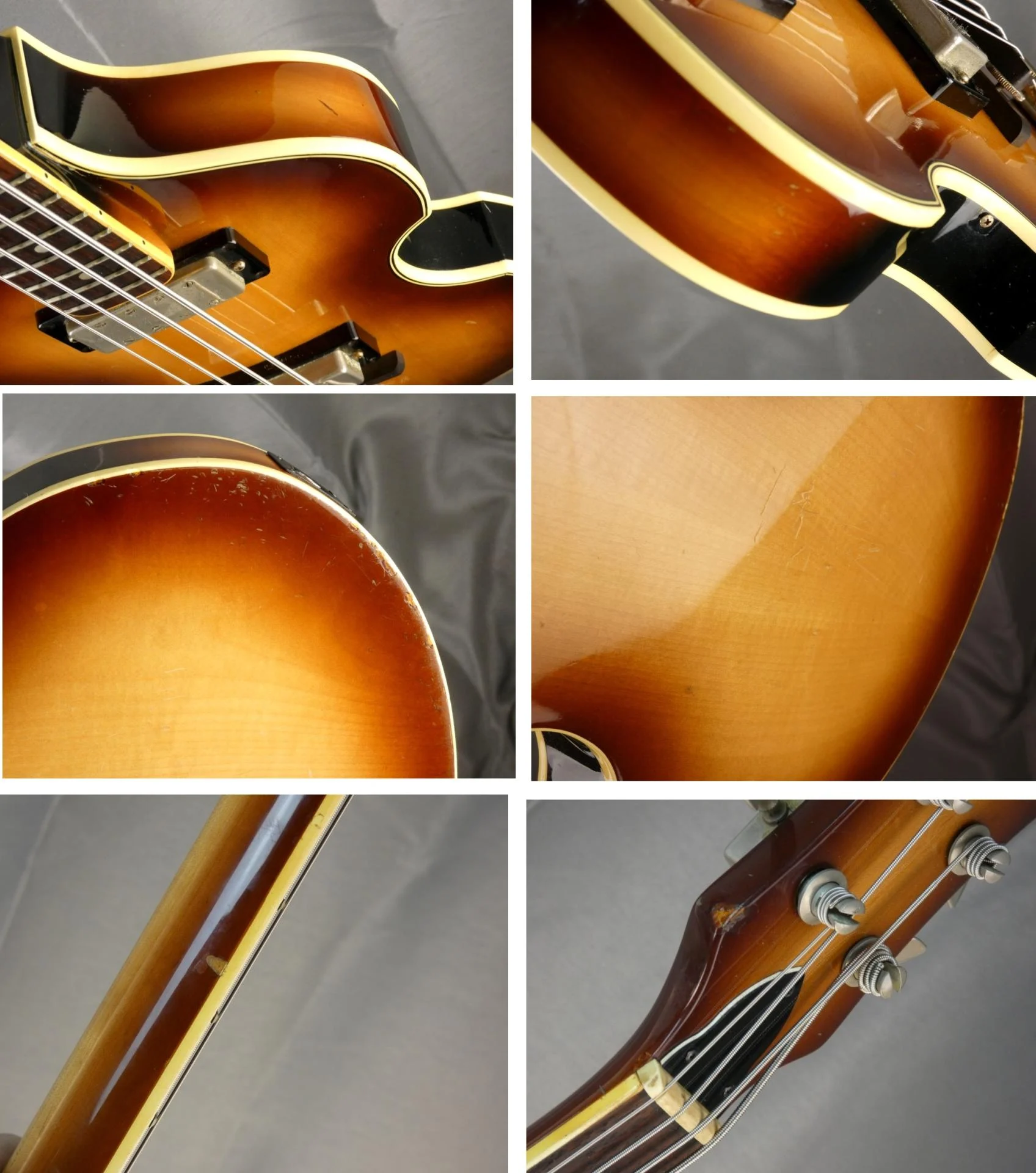 Bel état général, quelques marques de vie, etc.. très bonne lutherie et très bonne tenue d’accord. Frettes et touche en très bon état : 8/10 ! (voir photos pour plus de précisions). La jouabilité, le confort, les sonorités sont plus qu’excellents. Très belle réplique japonaise de la célèbre basse de Paul Mac Cartney et à repréciser, modèle GAUCHER.